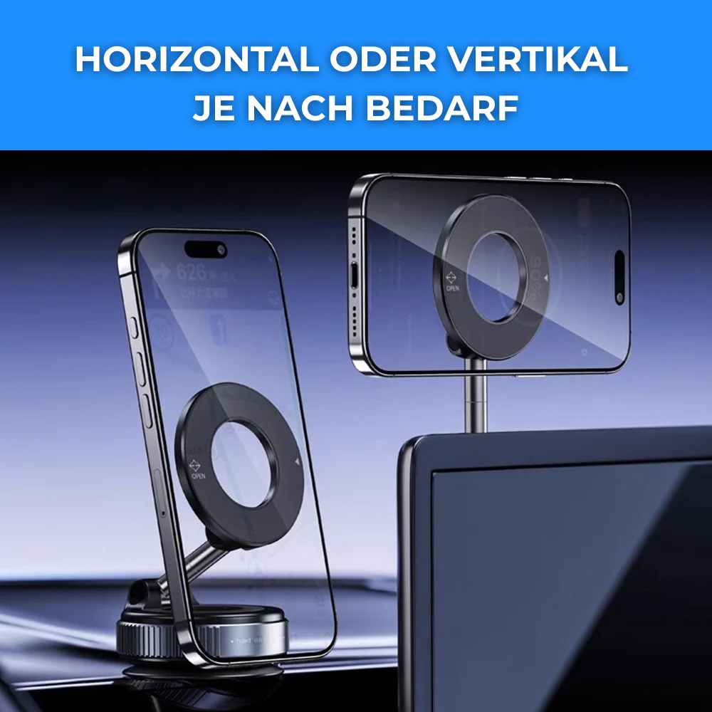 Der Magnetic ProFold ist mehr als nur ein Auto-Handyhalter. Ob im Büro beim Arbeiten, in der Küche beim Kochen, zu Hause beim Streaming oder unterwegs im Auto – dieser smarte, faltbare Halter sorgt dafür, dass dein Smartphone jederzeit sicher fixiert ist. Ansetzen, drehen und sicher sitzt die Halterung. Mit starker Vakuum-Saugkraft, magnetischer Haftung und flexibler 360°-Rotation ist er der perfekte Begleiter für alle Situationen.